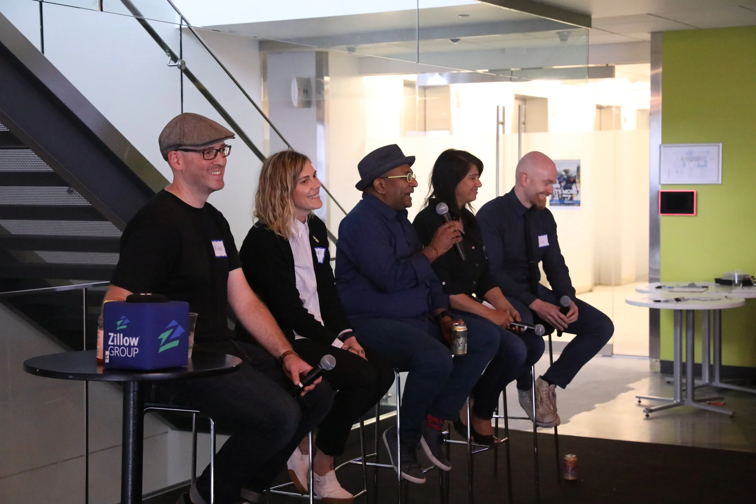 Panelists speaking at Zillow on implementing design processes in changing culture.